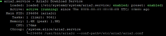 1 | systemctl status aria2 |