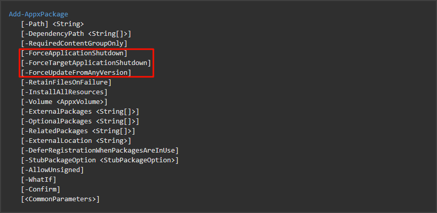 1 | Add-AppxPackage {Microsoft.DesktopAppInstaller的appx安装包路径} -ForceApplicationShutdown -ForceUpdateFromAnyVersion |